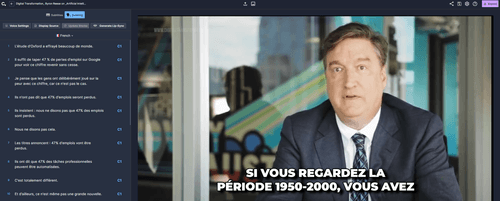 Checksub first transcribes the audio and translates the transcription. Then, when the translation is done, it generates a realistic, natural and sync-in replica of all the speaking voices.